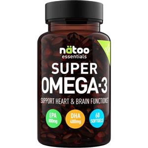 Natoo Essentials Super Omega 3 - Integratore Omega 3 con EPA 800mg, DHA 400mg e Vitamina E - 60 Softgel