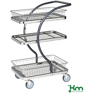 Kongamek Carrello della Spesa e Servizio con 1 Ripiano e 2 Cestini in Filo Metallico Cromato