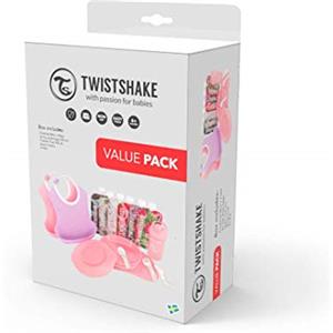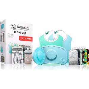 Twistshake Set di Stoviglie per Bambini - Include 2 Bavaglini, Bottiglia per Imparare a Bere e 6 Ciottoli, Senza BPA, Colore Blu/Verde