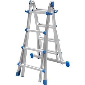 Facal Scala Telescopica Multiposizione in Alluminio 4,90 m con 4 5 Gradini e Cerniere Antiruggine