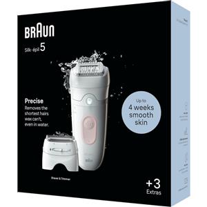 Braun Silk-épil 5 Depilatore Donna, Epilatore Elettrico Donna con Rifinitore,3 Accessori Viso Inclusi, Uso a Secco o Sotto Acqua, Idea Regalo, 5-620 Bianco e Rosa