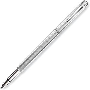 Caran d'Ache Chevron Penna Stilografica M in Ottone Massiccio Placcato Argento Rodiato