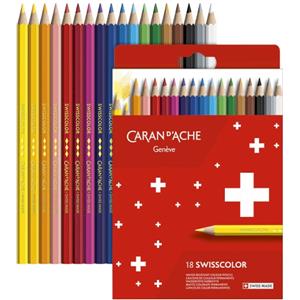 Caran d'Ache Swisscolor - Matite colorate permanenti 18 colori, mina morbida 2.8 mm, legno di cedro FSC®