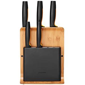 Fiskars Ceppo per Coltelli 1057552 con 5 Coltelli Professionali in Bambù e Acciaio Inox - Design Compatto e Moderno