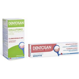 Recordati Dentosan Collutorio Clorexidina 0,12% 200 ml Dentifricio Sensitive 75 ml - Igienizzante antiplacca e per sensibilità dentale