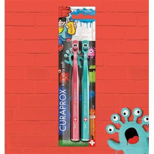 Curaprox CS Kids - Spazzolino da Denti Ultra Soft per Bambini (4-12 anni), Edizione Speciale Kids Graffiti, 2 Pezzi