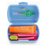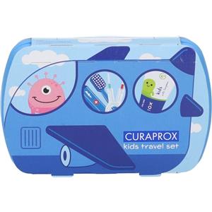 Curaprox Kids Travel Set - Set da viaggio con spazzolino, dentifricio e scovolini interdentali per una cura dentale delicata (blu)