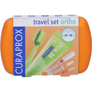Curaprox Set da Viaggio Ortho Orange - Spazzolino Ultra Morbido, Dentifricio Sbiancante e Scovolini Interdentali