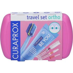 Curaprox Set da Viaggio Ortho Rosa - Spazzolino Ultra Morbido, Dentifricio Sbiancante e Scovolini Interdentali