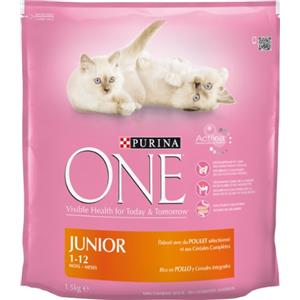 PURINA ONE Junior Crocchette per Gatti al Pollo - 1,5 kg, Supporto Immunitario e Salute del Pelo