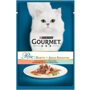 Purina Gourmet Perle Duetti - Cibo Umido per Gatti con Salmone e Merluzzo in Bustina da 85 gr