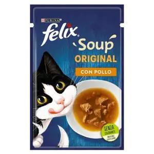 Purina Felix Soup Gusto Pollo - Cibo Umido per Gatti in Busta da 48g con Brodo e Bocconcini Succulenti