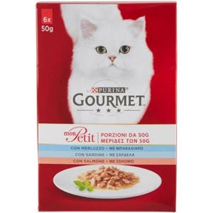 PURINA Gourmet Mon Petit - Cibo Umido per Gatti con Merluzzo, Sardine e Salmone, 6 Buste da 50g