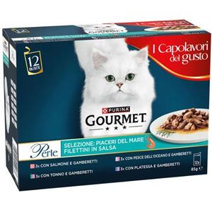 Purina Gourmet Perle Piaceri del Mare - Cibo Umido per Gatti in Filettini con Salsa (12 x 85gr)