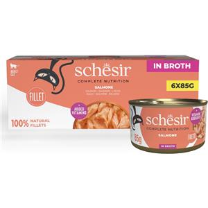 Schesir Alimento Umido Completo per Gatti - Filetti in Brodo di Salmone, Multipack 6 x 85g