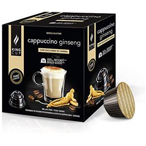 King Cup - 1 Confezione da 20 Capsule di Cappuccino al Ginseng con Zucchero di Canna, 10 Capsule 100% Compatibili con Sistema Nescafè Dolce Gusto, Senza Glutine e Senza Lattosio
