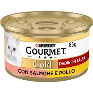Purina Gourmet Gold Dadini in Salsa con Salmone e Pollo - Alimento Umido per Gatti - Lattina da 85 gr