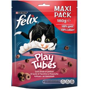 Felix PlayTubes Snack per Gatti - Cilindri Croccanti al Gusto di Tacchino e Prosciutto, 180g