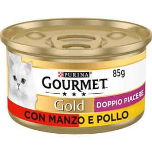 Purina Gourmet Gold Doppio Piacere con Manzo e Pollo - Alimento Completo per Gatti Adulti - 85g