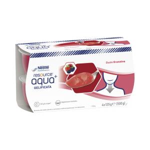 Nestle' It. Resource Aqua+ Bevanda gelificata gusto granatina per idratazione sicura dei pazienti disfagici 4 x 125 ml