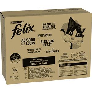 Felix Le Ghiottonerie in Gelatina 80 x 85 g umido gatto - Varietà di pesce 2 (Platessa, Salmone, Tonno, Merluzzo)