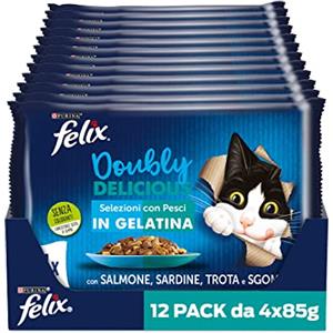 Purina Felix Gatto Le Ghiottonerie, con Salmone e Tonno in Gelatina, 4x85gr
