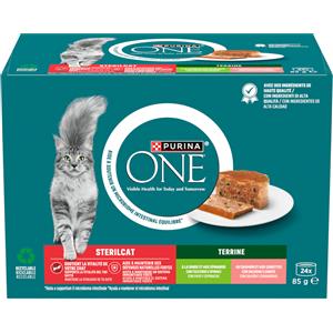 Purina ONE SterilCat Cibo Umido per Gatti Adulti - Mix con Salmone e Carote, Tacchino e Spinaci, 24 lattine da 85 g