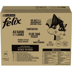 Felix Le Ghiottonerie - Cibo umido per gatti, Selezione mista (Manzo, Pollo, Merluzzo, Tonno) - 120 x 85 g