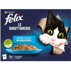 Purina Felix Le Ghiottonerie Multipack - Cibo Umido per Gatti con Salmone e Tonno in Gelatina - 12 Bustine da 85g