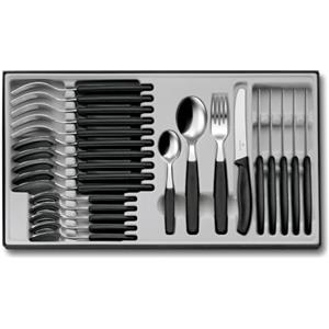 Victorinox Swiss Classic Set da Tavola, 24 Pezzi, Adatto alla Lavastoviglie, Filo Ondulato Ultra Affilato, Nero