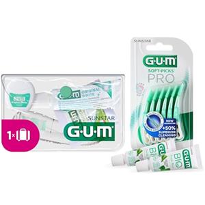 GUM Travel Kit - Dentifricio Originale Bianco, Spazzolino, Filo Interdentale, 2 Soft-Picks 2 Campioni Extra