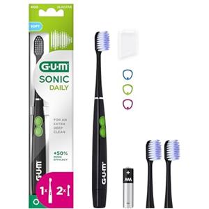 GUM SONIC DAILY Spazzolino elettrico sonico a batteria | Per una pulizia delicata e approfondita | 1x spazzolino da denti, 2x testine di ricambio, 1x batteria AAA (nero)