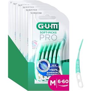 GUM SOFT-PICKS PRO Scovolini interdentali | design curvo per un facile accesso alle aree difficilmente raggiungibili | azione delicata per gengive sensibili | [M - 6x60]
