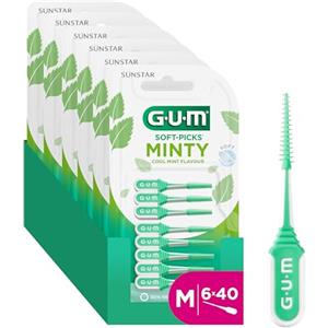 GUM SOFT-PICKS MINTY Scovolini in gomma al fresco sapore di menta | Pulizia dei denti e rimozione della placca | Misura M | Multipack 6x40