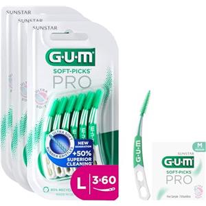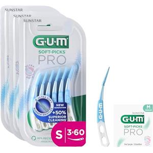 GUM SOFT-PICKS PRO Scovolini interdentali | design curvo per un facile accesso alle aree difficilmente raggiungibili | azione delicata per gengive sensibili ([M - 3x60] +1 bonus sample)