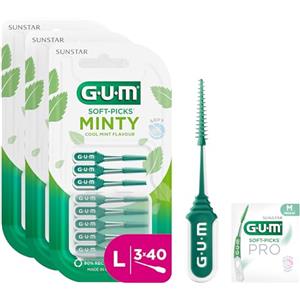 GUM SOFT-PICKS MINTY Scovolini in gomma al fresco sapore di menta | Pulizia dei denti e rimozione della placca | Misura L | Multipack 3x40 (con 1 campione omaggio)