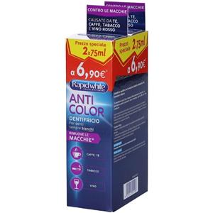 Bionike Rapid White Dentifricio Sbiancante Anticolor Bipack 2 x 75ml - Rimuove Macchie da Caffè, Tè e Tabacco