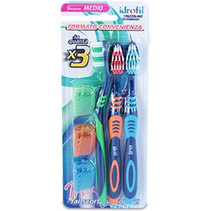 Idrofil Spazzolino Tris con Setole Medie - Set di 3 Pezzi in Diverse Combinazioni di Colore