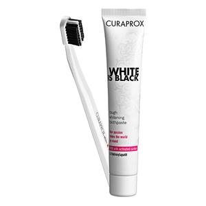 Curaprox Set Sbiancante: Dentifricio Al Carbone Attivo 90ml Spazzolino Morbido Nero