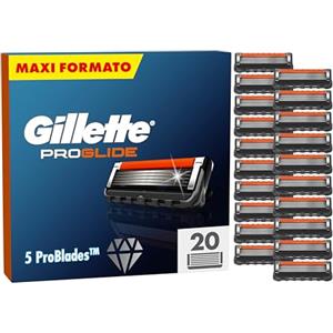 Gillette Fusion 5 ProGlide, 20 Lamette Fusion 5 ProGlide Di Ricambio per Rasoio Barba Uomo Con Nuova Lubrificazione EverGlide Per Una Profondità E Comfort Incredibili, Lama Barba Uomo