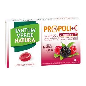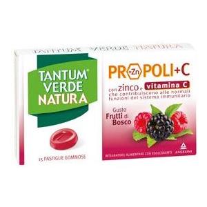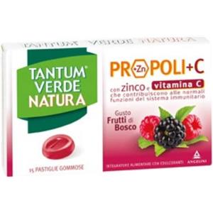ANGELINI SpA TANTUM VERDE NATURA PROPOLI+C CON ZINCO E VITAMINA C 15 PASTIGLIE GOMMOSE GUSTO FRUTTI DI BOSCO