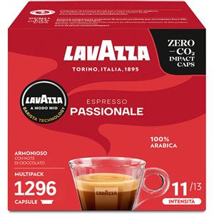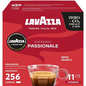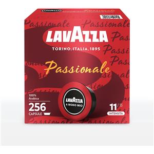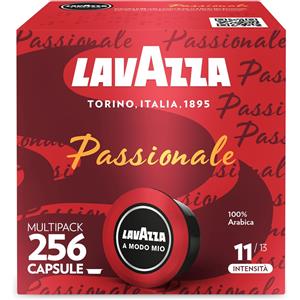 Lavazza, A Modo Mio Passionale, 256 Capsule Caffè, per un Espresso con Note di Caramello e Cioccolato, 100% Arabica, Intensità 11/13, Tostatura Scura, 16 Confezioni x 16 Capsule