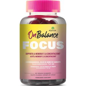 AQUILEA On Balance Focus - Integratore Memoria e Concentrazione, 60 Gummies Vegane al Gusto Ciliegia con Ashwagandha, Eleuterococco e Vitamina B5