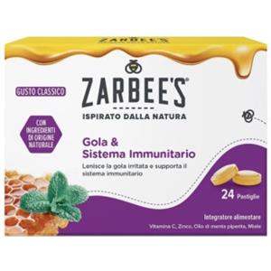 Zarbee's Gola & Sistema Immunitario - Integratore Alimentare 24 Pastiglie con Vitamina C e Zinco, Gusto Classico, Senza Glutine e Lattosio