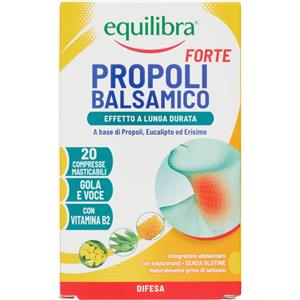 Equilibra Propoli Balsamico Forte - Compresse Masticabili per Mal di Gola con Propoli, Eucalipto e Vitamina B2, Senza Glutine e Lattosio