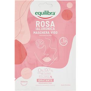 Equilibra Maschera Viso Idratante Rosa Ialuronica - Tessuto 100% Naturale con Acqua di Rosa Fermentata e Acido Ialuronico
