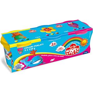 Didò Tris - Pasta modellabile 3 barattoli da 220 g in giallo, azzurro e magenta perlato, sicura e non macchiante