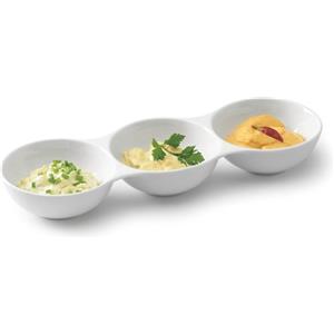 Tognana - Ciotole per aperitivo in Porcellana a 3 sezioni, 37 x 12 x 6 cm, lavabili in lavastoviglie e adatte per microonde