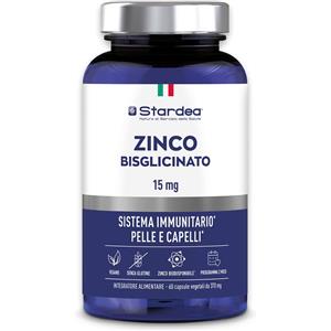 Stardea Zinco Bisglicinato 15 mg - Integratore Vegetale per Sistema Immunitario, Pelle e Capelli - 60 Capsule