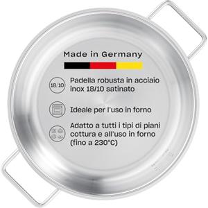 Fissler Pure Collection - Padella in acciaio inox 28 cm, non rivestita, con scala graduata interna e bordo alto, compatibile Induzione